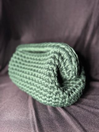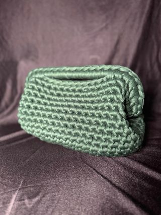 Clutch bag in a beautiful green shade. Its unique texture makes it a stylish accessory. - Hand-crocheted design. - Soft, fabric material.