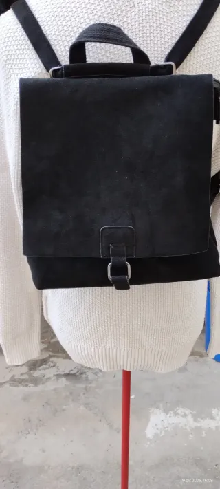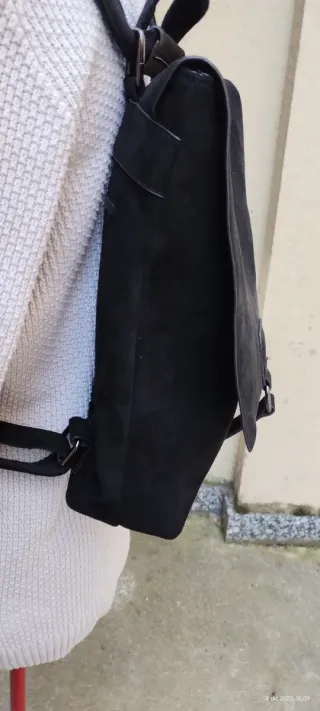 Zaino in similpelle scamosciata. - Chiusura con fibbia. - Tracolle regolabili.