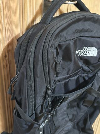 Zaino Recon Della the north face. Altezza circa 47 cm larghezza circa 37cm. 30l. Diviso in tre compartimenti: Uno imbottito sulla schiena per il pc, Uno spazio centrale e una tasca frontale con diverse tasche all’interno. C’è una retina davanti e due laterali. Zaino penso del 2018 ma tenuto in ottime condizioni, usato molto poco. Ha qualche lievissimo segno sul davanti.