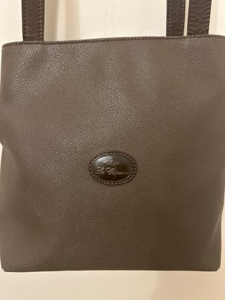 Borsa Vintage Les Copains di pelle color tortora. Composta da tre scompartimenti e taschino interno, molto capiente. Può essere utilizzata a spalla o a tracolla. In buono stato, unici piccoli difetti quelli mostrati nelle foto, internamente ai bordi laterali, non visibili dall’esterno -come anche da foto. Esternamente la pelle è in ottimo stato, resistente. Il fondo esterno, ugualmente, è in ottimo stato con minima sbucciatura agli angoli. Prezzo trattabile