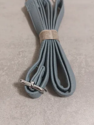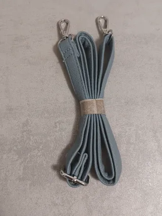 Tracolla per borsa, nuova sigillata. - Spessore 2 cm. - Materiale: ecopelle. - Colore: blu. - Lunghezza regolabile con fibbia. - Moschettoni argentati per aggancio.