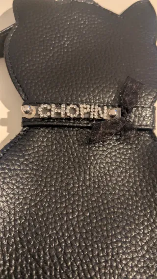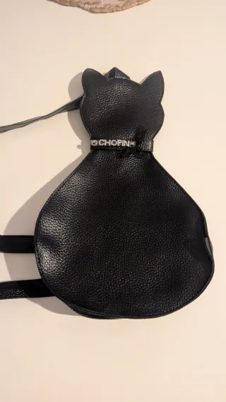 Zainetto a forma di gatto, un accessorio divertente e originale. - Materiale in similpelle texturizzata. - Dettaglio con strass sul collare con la scritta CHOPIN. - Alto circa 37 cm dalle punte delle orecchie del gatto