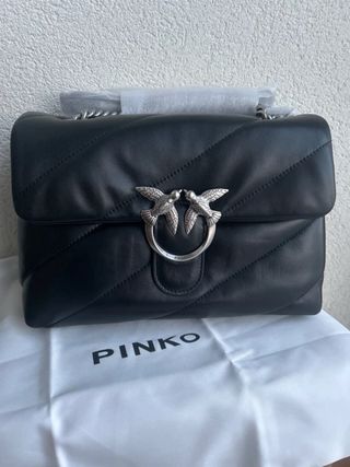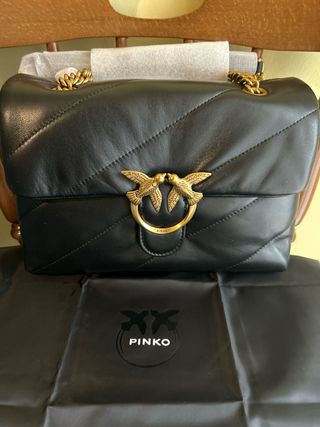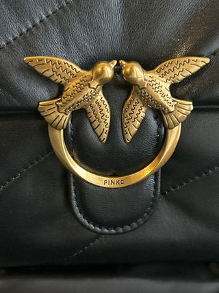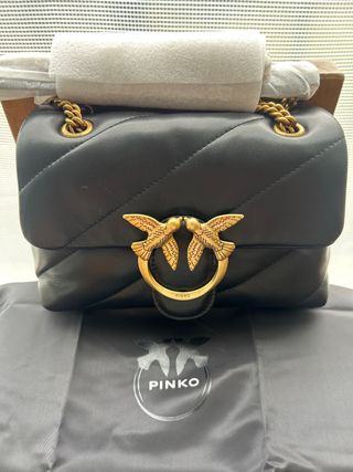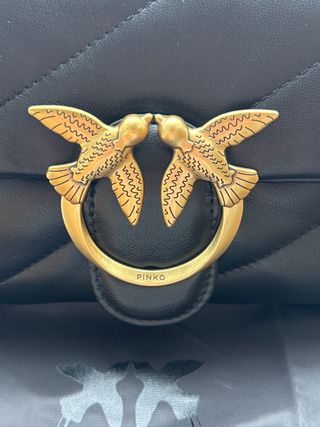 Elegante borsetta Pinko, un accessorio che aggiunge un tocco di classe al tuo outfit. - Design trapuntato con motivo a V. - Iconico logo a forma di uccelli dorati sul davanti. - Catena a tracolla dorata. - Chiusura con patta. - Dust bag inclusa.
