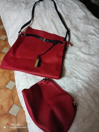 Borsa a mano e tracolla in ecopelle rossa, con pochette abbinata. - Chiusura con fibbia e cinturino. - Dettagli in metallo dorato. - Tracolla regolabile.