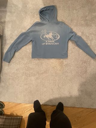Felpa con cappuccio Zara dal taglio moderno e una stampa sul davanti. - Stampa A TRAIL OF STARDUST con cavallo. - Design con cappuccio. - Orlo sfrangiato.