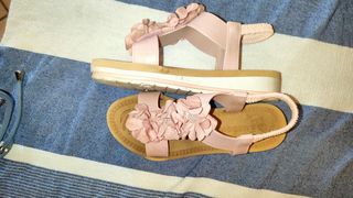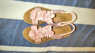 Sandali rosa perfetti per l'estate. Sono in ottime condizioni e presentano una decorazione floreale. Ideali per le giornate più calde. - Due paia di sandali. - Chiusura con cinturino alla caviglia. - Suola piatta.