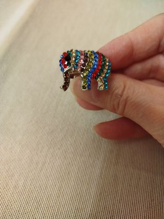 Grazioso anello a forma di elefantino con tante pietre colorate. - Design a forma di elefante. - Decorato con pietre brillanti. - Stile vivace e allegro.