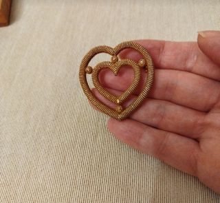 Bellissima spilla vintage a forma di doppio cuore. - Design a doppio cuore intrecciato. - Dettagli con piccole sfere. - Perfetta per aggiungere un tocco romantico.