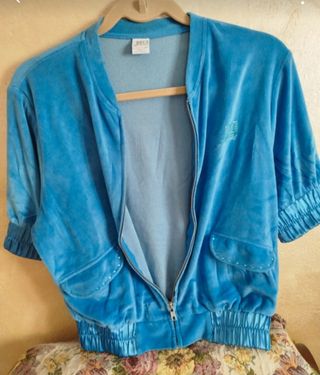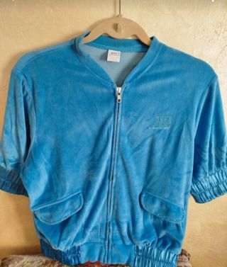 Felpa da donna in morbido tessuto. - Maniche corte con elastico. - Tasche frontali. - Zip centrale.