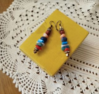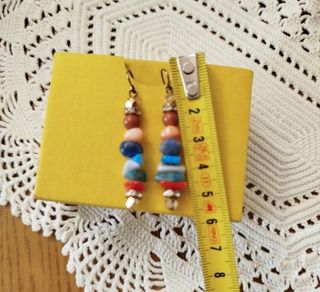 Eleganti orecchini realizzati con pietre naturali. - Design unico con diverse pietre colorate. - Montatura color oro.
