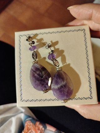 Eleganti orecchini vintage con dettagli in argento e pietre di ametista. - Design pendente con pietre sfaccettate. - Chiusura a perno per un facile utilizzo.