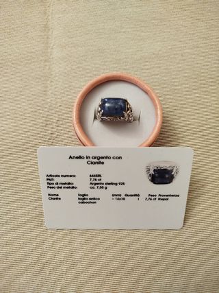 Anello in argento sterling 925 con una bellissima cianite tibetana taglio antico cabochon. - Pietra: Cianite - Metallo: Argento sterling 925 - Peso metallo: ca. 7,55 g - Misure pietra: ~14x10 mm - Provenienza: Nepal