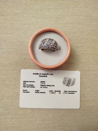 Elegante anello in argento sterling 925 impreziosito da tanzaniti. - Articolo numero: 6800TH - Peso del metallo: ca. 6,26 g - Tipo di pietra: Tanzanite - Taglio: forma rotonda - Dimensioni pietra: ~ 2,2x2,2 mm - Quantità pietre: 36 - Peso pietre: 1,77 ct - Provenienza: Tanzania