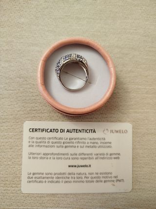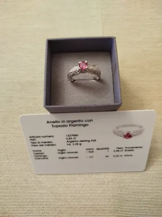 Anello in argento sterling 925 con topazio Flamingo e diamanti. - Peso del metallo: ca. 2,26 g - Topazio taglio rotondo 5x5 mm, 0,58 ct Brasile - Diamanti taglio rotondo 1x1 mm, 0,24 ct Africa