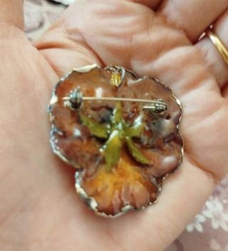 Spilla a forma di fiore, con dettagli in oro e petali rossi. - Design floreale unico. - Finitura lucida.