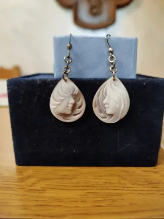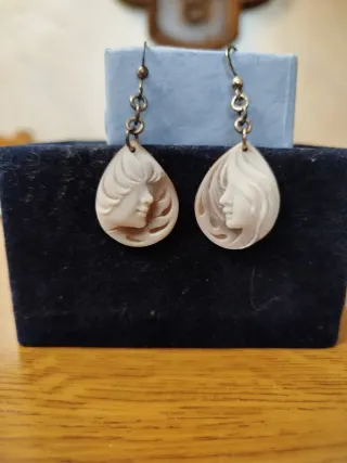 Eleganti orecchini con cammeo inciso. - Design a goccia. - Monachelle in metallo color argento.