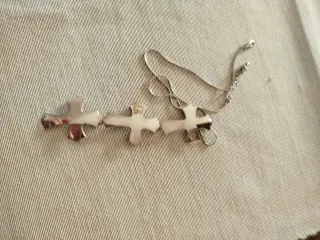 Collana con un pendente composto da tre croci sovrapposte. - Design a cascata con tre croci. - Catena sottile e luminosa.