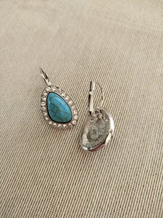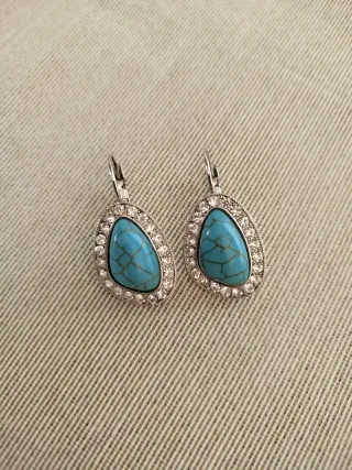 Eleganti orecchini in alta bigiotteria con pietra turchese. - Design a goccia con contorno scintillante. - Chiusura a monachella.