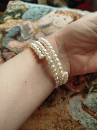 Elegante braccialetto realizzato con vere perle di fiume. - Perle naturali. - Design a più fili.
