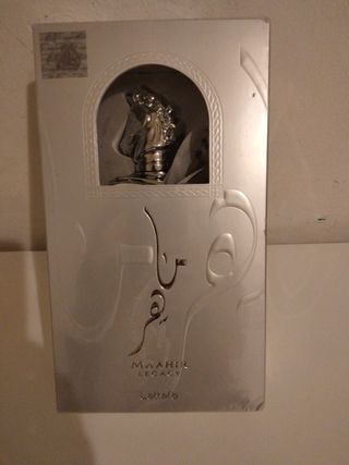 Profumo da uomo Lattafa MAAHIR LEGACY con un design elegante. - Fragranza maschile. - Confezione con dettagli dorati e argentati.