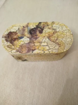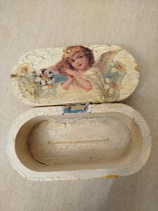Elegante portagioie in legno decorato con un motivo di angioletti. La finitura screpolata aggiunge un tocco vintage. - Decorazione con angioletti. - Finitura effetto craquelé.