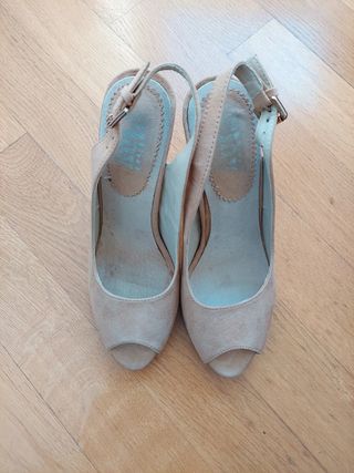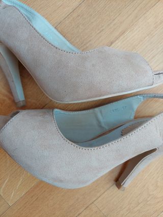 Eleganti scarpe décolleté con tacco alto, perfette per ogni occasione. - Materiale scamosciato. - Punta aperta. - Cinturino posteriore. - Color beige/rosa antico - Fibbia posteriore regolabile - Misura 37 - Tacco 10 cm circa (vedi foto) #décolleté #tacchialti #cerimonia