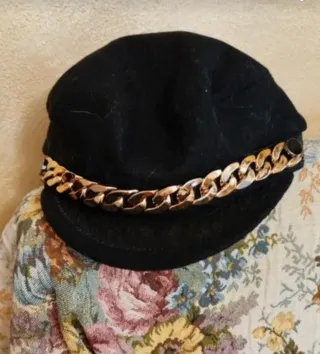 Elegante cappello invernale da donna, un accessorio che aggiunge un tocco di stile. - Dettaglio di catena dorata. - Design classico e versatile.