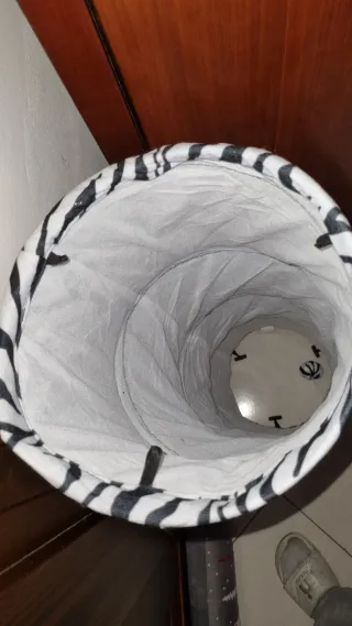 Tunnel gioco per gatti Lovedi' con fantasia a zebra. Presenta un'apertura circolare per l'accesso. - Fantasia a zebra. - Apertura circolare. - Tessuto scricchiolante e pallina. Il mio gatto si è stancato di giocarci e devo cambiare attrattiva.