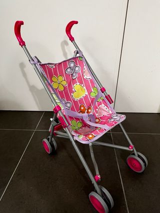 Passeggino giocattolo rosa con farfalle