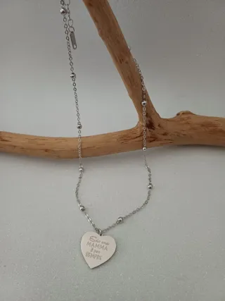 Delicata collana con ciondolo a forma di cuore, ideale per celebrare la mamma. La catenina è impreziosita da piccole sfere. - Ciondolo a forma di cuore con incisione Solo una mamma per sempre. - Materiale: Acciaio inossidabile.