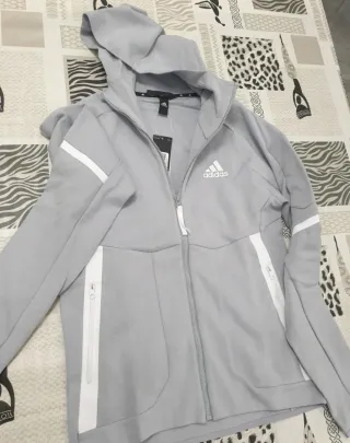 Completo set sportivo Adidas, ideale per l'allenamento e il tempo libero, giacca con cappuccio taglia S per una vestibilità slim, pantaloni taglia M, nuovissima come da negozio - Tuta completa composta da felpa con cappuccio e pantaloni. - Design moderno e funzionale. - Logo Adidas ben visibile.