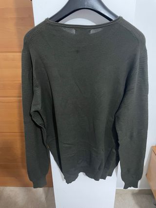 Maglione Christian con una texture a coste orizzontali. - Colore verde oliva. - Taglia M (corrisponde a 38-40 / 48-50). - Girocollo.