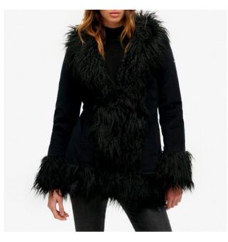 Elegante cappotto Superdry con dettagli in pelliccia. - Colore nero - Pelliccia sintetica sul collo e sui polsini - Design moderno e caldo
