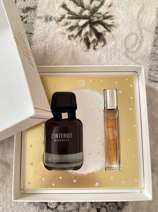 Elegante cofanetto regalo L'Interdit di Givenchy. - Profumo da donna in formato 50 ml - Travel size 13 ml - Dettagli dorati e logo del brand.