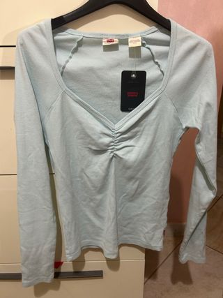 Maglia a maniche lunghe con scollo a V e dettaglio arricciato sul davanti. - Tessuto morbido e confortevole. - Design elegante e femminile.