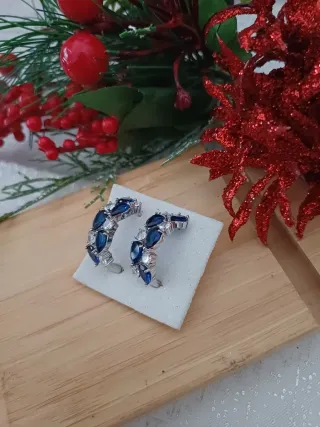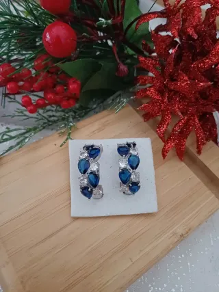 Eleganti orecchini nuovi con pietre blu e dettagli argentati. - Design a goccia con strass - Montatura in metallo lucido.