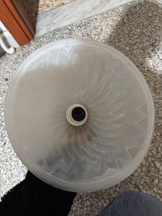 Lampadario con un design elegante e moderno. - Materiale: vetro e plastica. - Colore: bianco e trasparente.