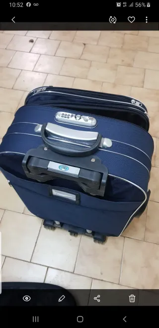 Trolley da viaggio di colore blu. - Manico telescopico e ruote per un facile trasporto. - Chiusura a combinazione. - Tasca porta documenti esterna.