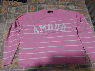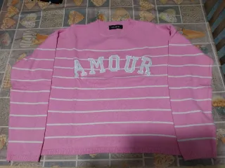 Morbido maglione da donna con scollo rotondo e maniche lunghe. Presenta un design a righe orizzontali. - Scritta AMOUR sul davanti. - Tessuto morbido e confortevole.