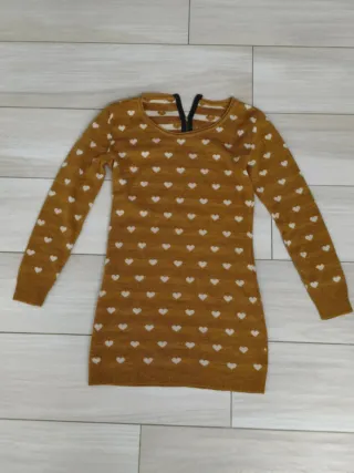 Maglia lunga da donna con una fantasia di cuori bianchi su fondo giallo ocra. - Maniche lunghe. - Girocollo. - Zip posteriore. Taglia unica Ottima vestibilità Applico ulteriori sconti se acquisti più prodotti