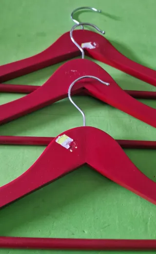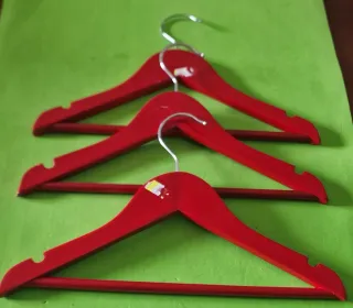 Set di grucce in legno di colore rosso, ideali per abiti da bambino. - Materiale: legno. - Colore: rosso. - Quantità: 3 pezzi.