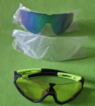 Occhiali sportivi con lenti intercambiabili. - Set completo con due lenti di ricambio. - Montatura resistente e design sportivo.