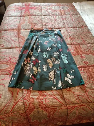 Gonna longuette con una bellissima fantasia di farfalle colorate. Perfetta per aggiungere un tocco di originalità al tuo guardaroba. - Tessuto leggero e confortevole. - Design a vita alta. - Ampia gonna svasata.