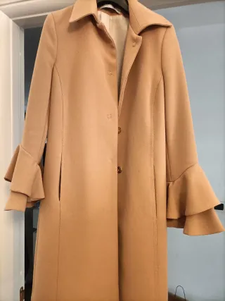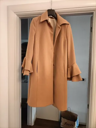Elegante cappottino da donna, perfetto per le mezze stagioni. - Maniche a campana a balze. - Chiusura con bottoni. - Linea dritta.