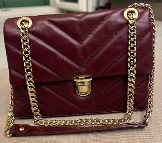 Elegante borsa a tracolla Victor & Hugo Paris, realizzata in vera pelle. - Design trapuntato a V. - Dettagli metallici dorati. - Chiusura a girello.