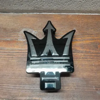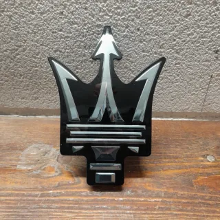 Emblema originale Maserati, un dettaglio distintivo per la tua auto. - Finitura nera lucida. - Dettagli cromati a contrasto.
