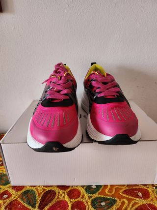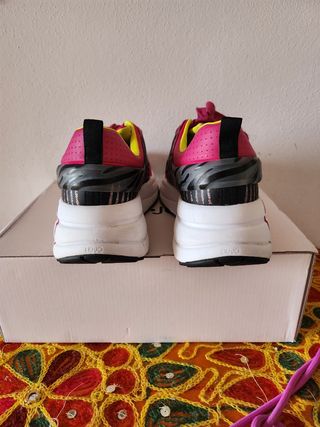 Scarpe Liu Jo da donna in un vivace mix di colori. Lacci rosa. Suola spessa bianca. Numero 38 , usate 1 volta praticamente nuove vendo x inutilizzo.