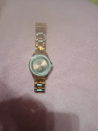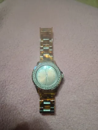 Elegante orologio da polso con cinturino. Funzionante da inserire batteria - Quadrante con dettagli luminosi. - Lunetta decorata con strass. - Cinturino in resina effetto tartarugato.