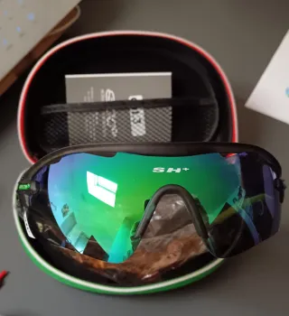 Occhiali da ciclismo SH+ RG 5100 Grafite con lente specchiata verde Cat.3. Nuovi, mai utilizzati e senza alcuna riga. Inclusi altri due set di lenti intercambiabili (trasparente e bronzata). Montatura leggera e avvolgente, perfetti per bici da strada e MTB. Completi di custodia rigida e accessori originali. Condizioni impeccabili.