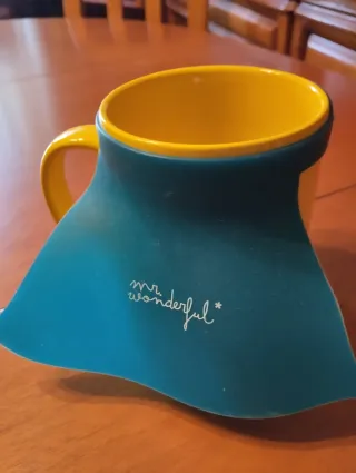 Tazza in ceramica con una simpatica grafica dedicata ai papà. - Design Sei un Super Papà - Colore giallo vivace con bordo blu - Ideale come regalo